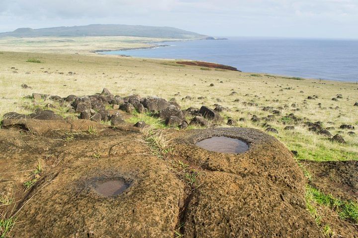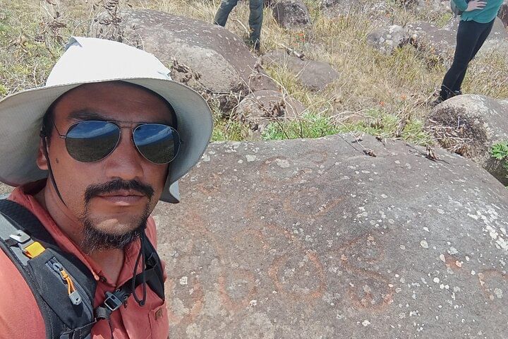 Breathtaking landscapes, eroded soils, trachyte domes, petroglyphs, caves, unique small moai, ceremonial monuments abandoned 600 years ago like the rest of the Peninsula. It's a very special full day hike that only very few try. Don't miss the opportunity to do it as a private tour with the most knowledgeable team on the island.